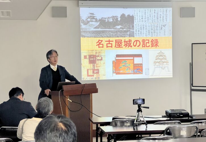 今月は名古屋城の専門家・原史彦先生をお招きし、名古屋城の復元に関する貴重なお話を伺いました。雨の続く日々の中にも関わらず、多くの支援者の皆様にお集まりいただき、充実した時間となりました。
