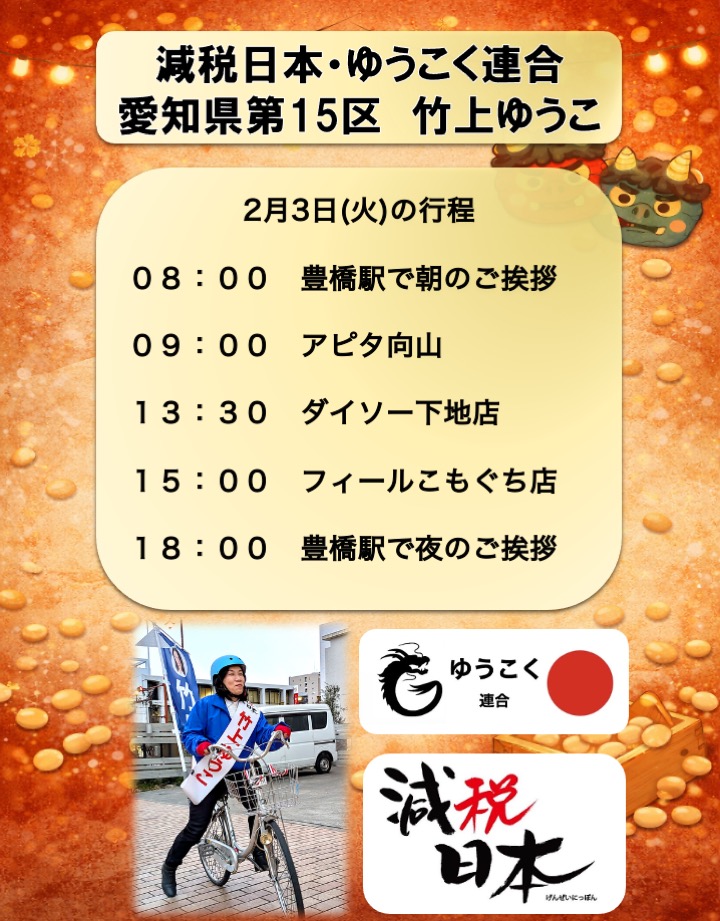 2月3日の活動予定について(選挙戦6日目を終えて)