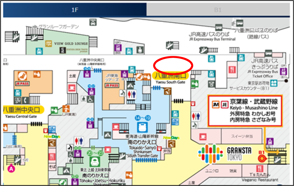 集合場所 東京駅八重洲南口改札口付近
