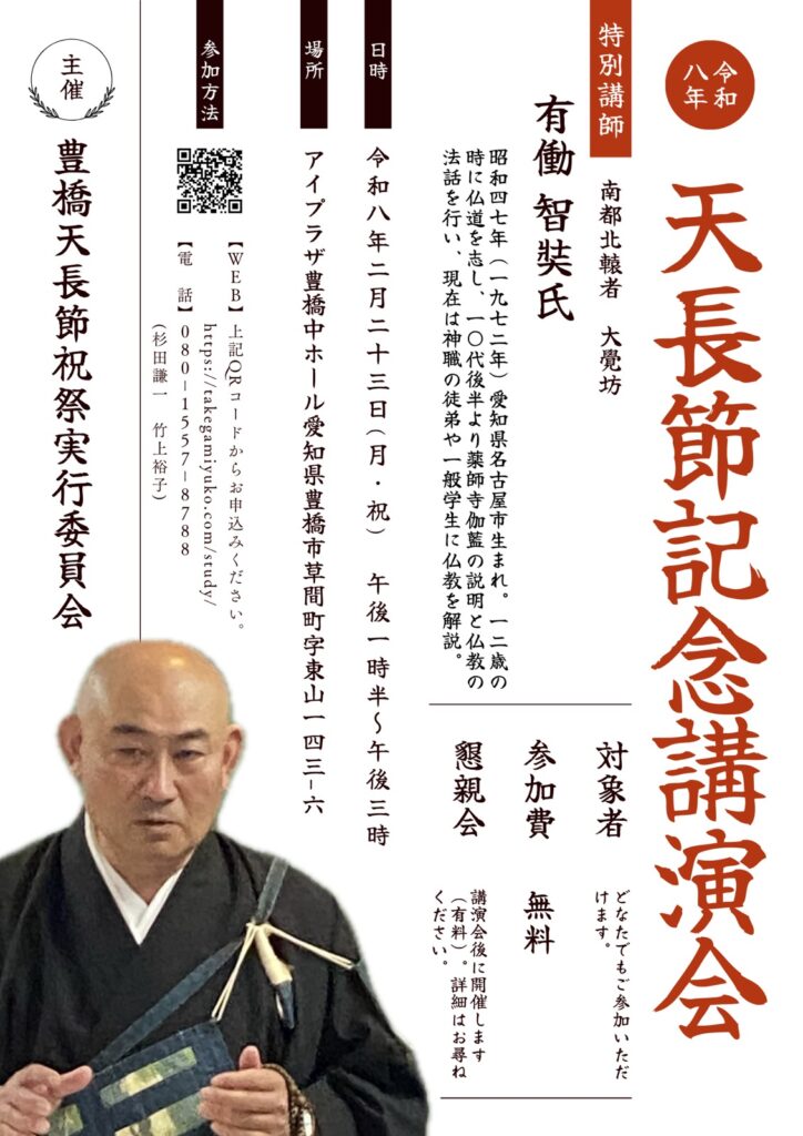 日時:令和8年2月23日(月・祝) 13:30〜15:00 場所:アイプラザ豊橋小ホール 講師:有働智奘先生 「天長節記念講演会」に参加します。 氏名 お住まいの地域(市町村のみ) メールアドレス(携帯電話会社のキャリアメール(softbank,ezweb,docomo,ymobile)等ではなく、Gmail,Yahooメール等のE-mailをお書きください) 所属 減税日本・ゆうこく連合竹上ゆうこ後援会チーム竹上ボランティア一般 紹介者 (任意) 参加予定日 天長節記念講演会(2月23日)13時30分 懇親会参加の有無 懇親会参加(大いに語りましょう)懇親会不参加(またの機会に) 連絡メモ 豊橋駅の送迎をご希望の方こちらに「送迎希望」とお書きください。送迎は事前申込制(豊橋駅南口FamilyMart・Starbucks付近 第一便12:30 第二便13:00) このフォームはスパムを低減するために Akismet を使っています。 データの処理方法の詳細はこちらをご覧ください。 Δ Post Views: 90